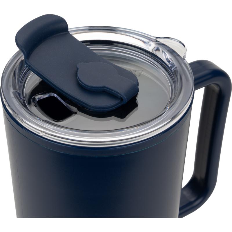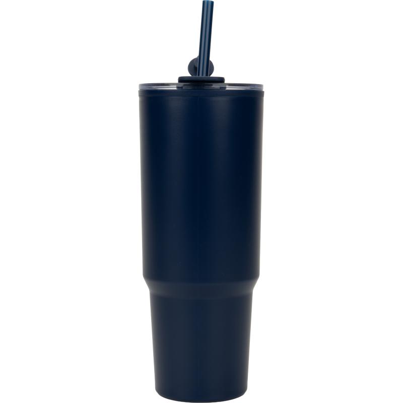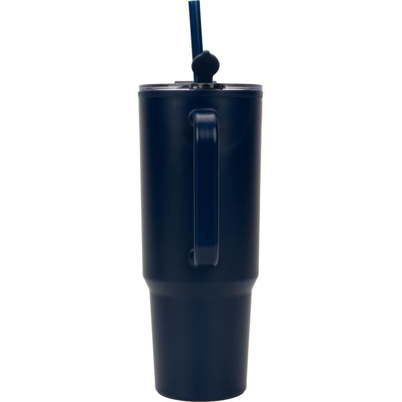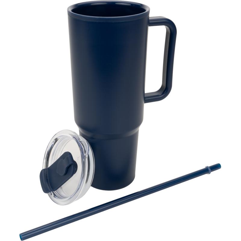 Kubek XXL, o pojemności 1200 ml, z podwójnymi ściankami, uchwytem do przenoszenia i słomką do picia.