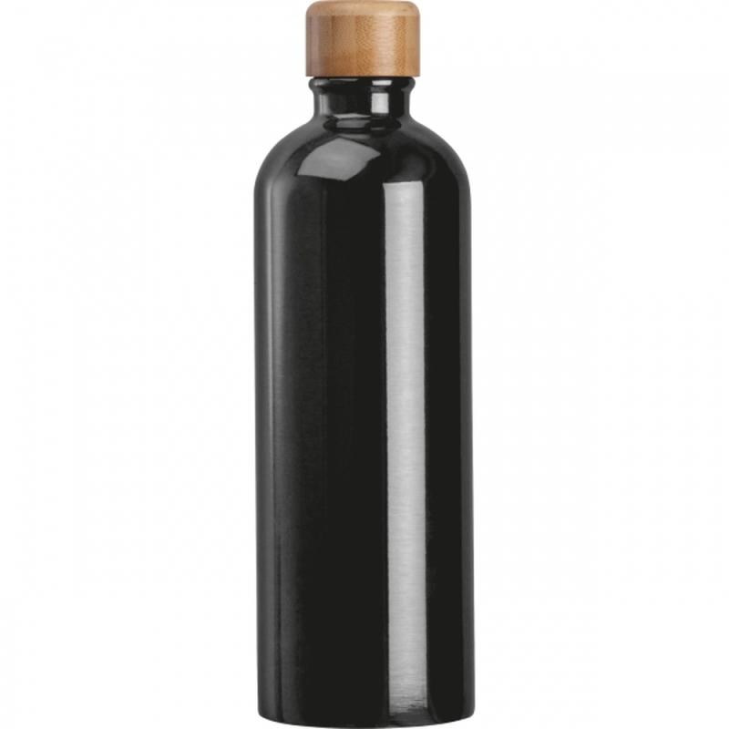 Butelka wykonana ze stali nierdzewnej, o pojemności 750 ml, z bambusową zakrętką do której został przymocowany karabińczyk.