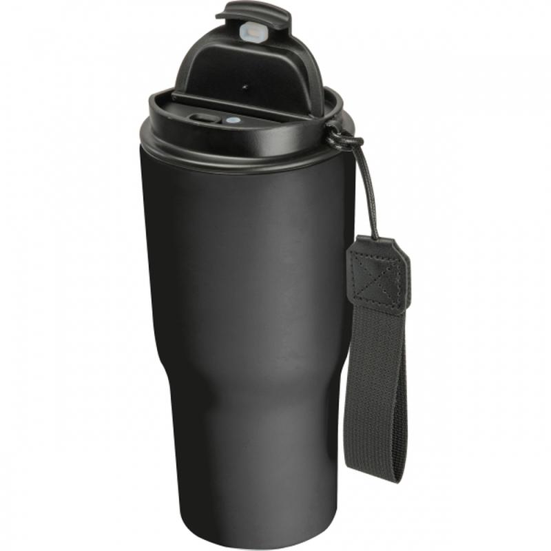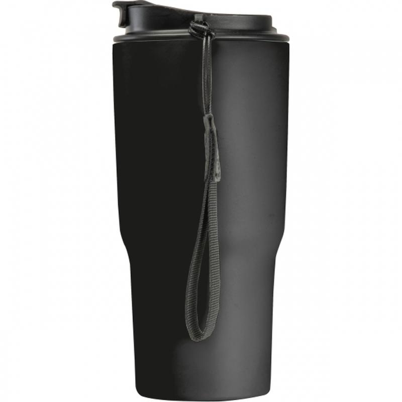 Kubek termiczny, wykonany ze stali nierdzewnej z recyklingu, z podwójnymi ściankami, o pojemności 550 ml. Kubek posiada praktyczny pasek do przenoszenia.
