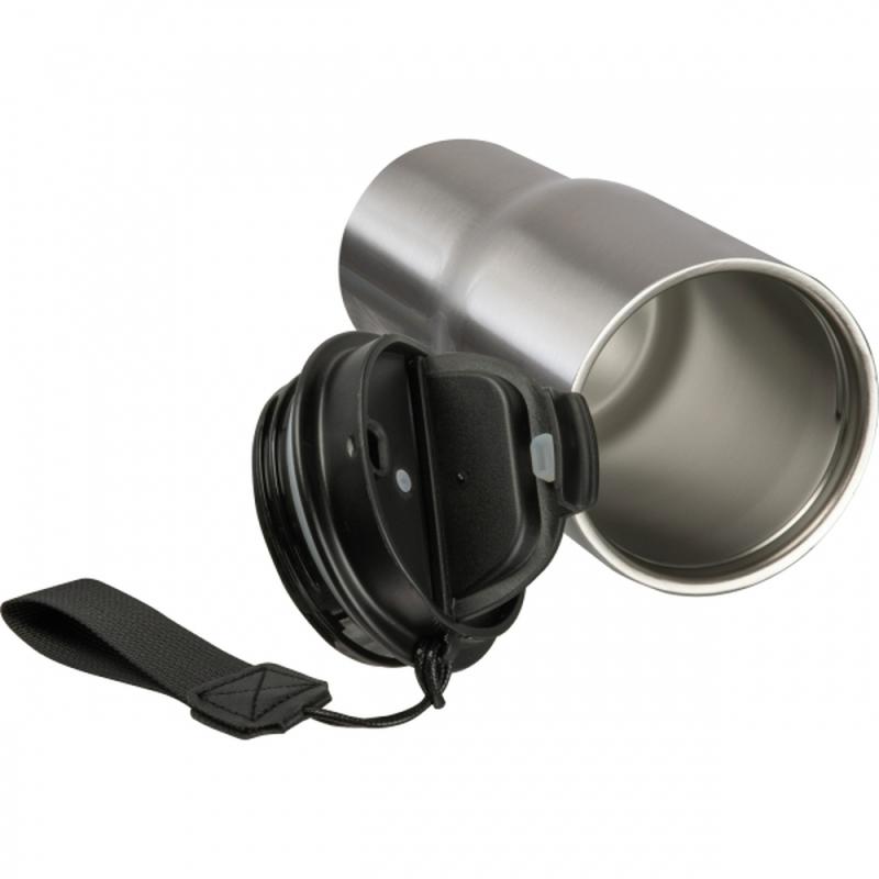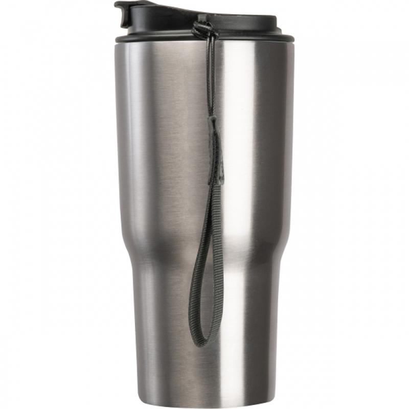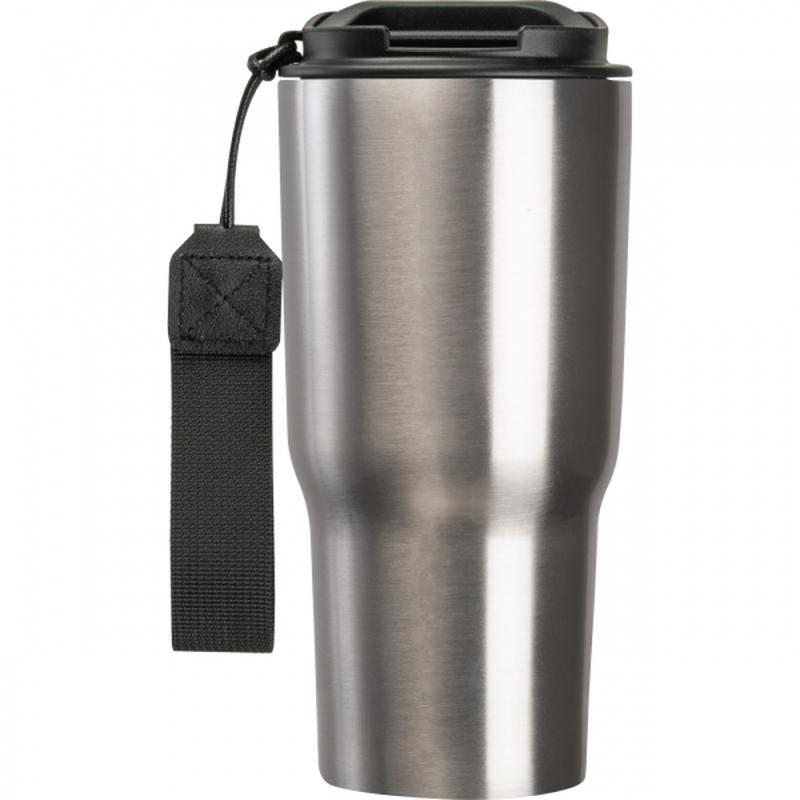 Kubek termiczny, wykonany ze stali nierdzewnej z recyklingu, z podwójnymi ściankami, o pojemności 550 ml. Kubek posiada praktyczny pasek do przenoszenia.