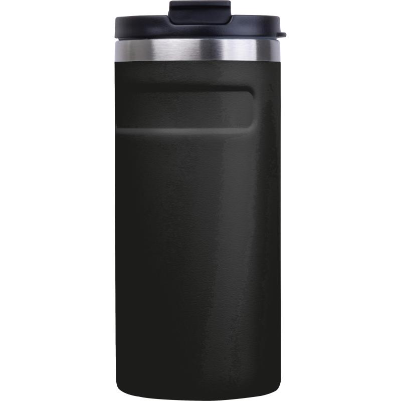 Kubek do picia o pojemności 450 ml, z podwójnymi ściankami, wykonany ze stali nierdzewnej z recyklingu, wyposażony w szczelne, zapobiegające wyciekom zamknięcie.