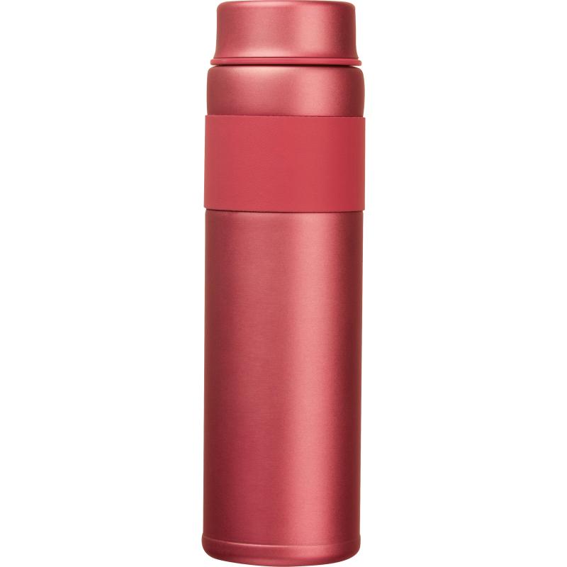 Butelka termiczna, wykonana ze stali nierdzewnej, o pojemności 600 ml, z podwójnymi ściankami i strefą uchwytu z PU.