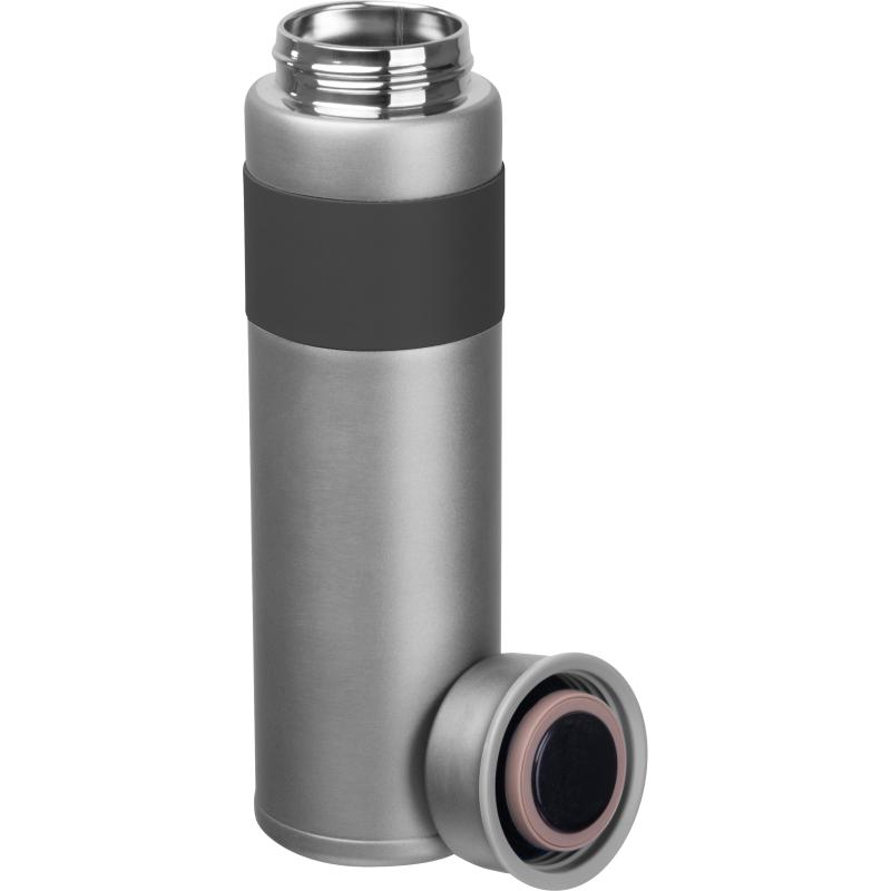Butelka termiczna, wykonana ze stali nierdzewnej, o pojemności 600 ml, z podwójnymi ściankami i strefą uchwytu z PU.