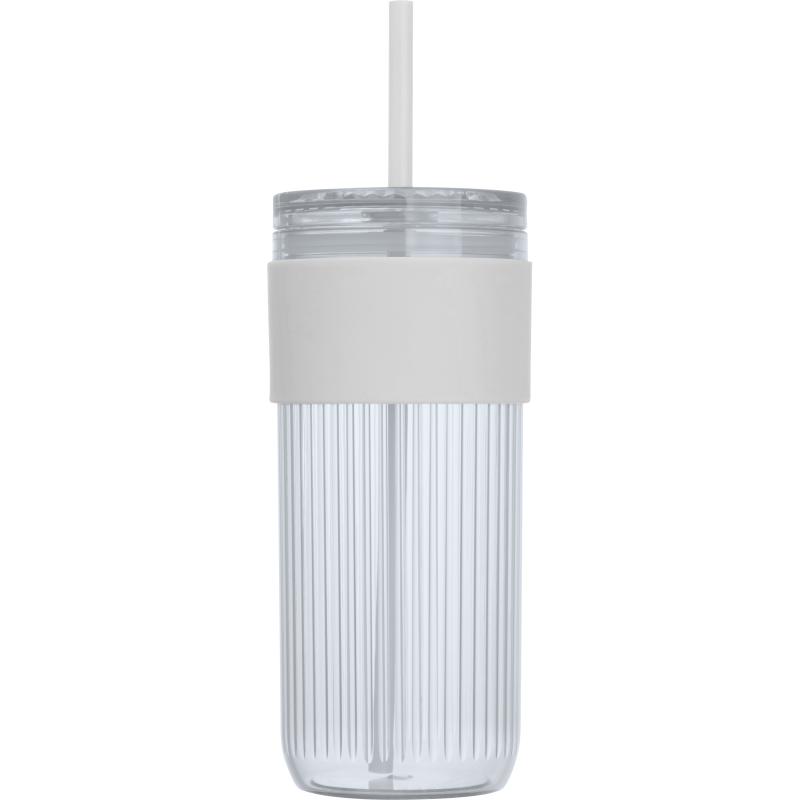 Ryflowany kubek, o pojemności 660 ml, ze słomką do picia i gumową strefą uchwytu.