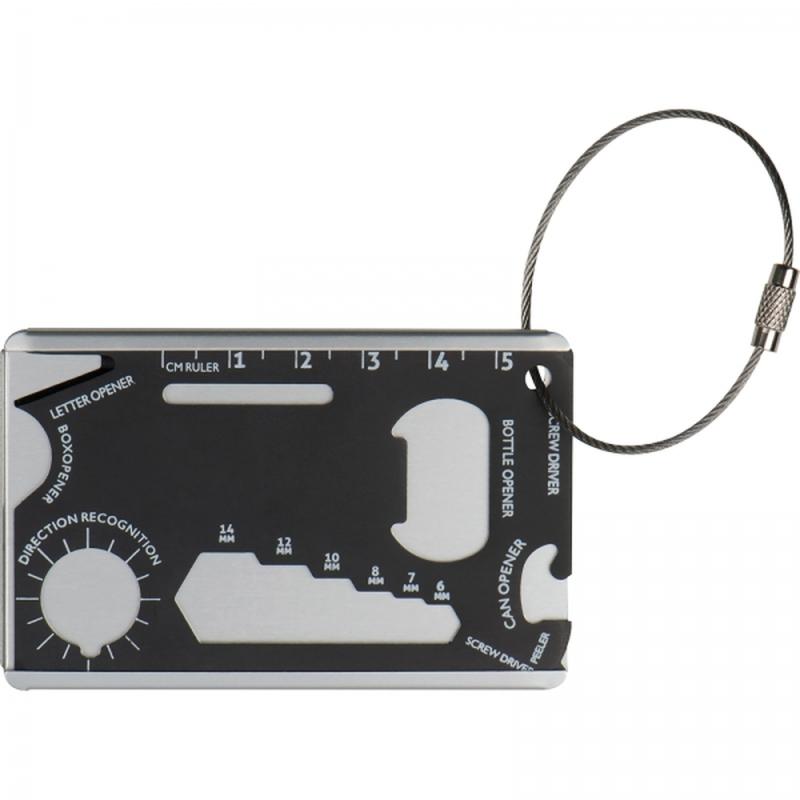 Karta survivalowa wykonana z aluminium. Zawiera: linijkę, otwieracz do butelek, otwieracz do puszek, śrubokręt, Logotyp można umieścić bezpośrednio na produkcie.
