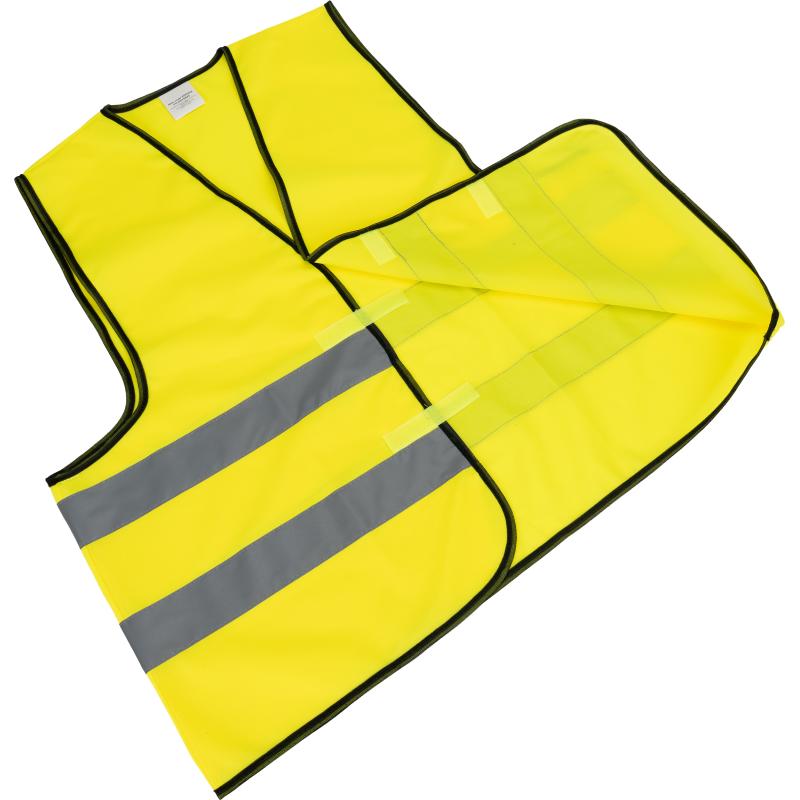 Kamizelka odblaskowa dla dorosłych z odblaskowymi paskami (klasa 2). Wykonana z poliestru. Posiada certyfikat ISO 20471.