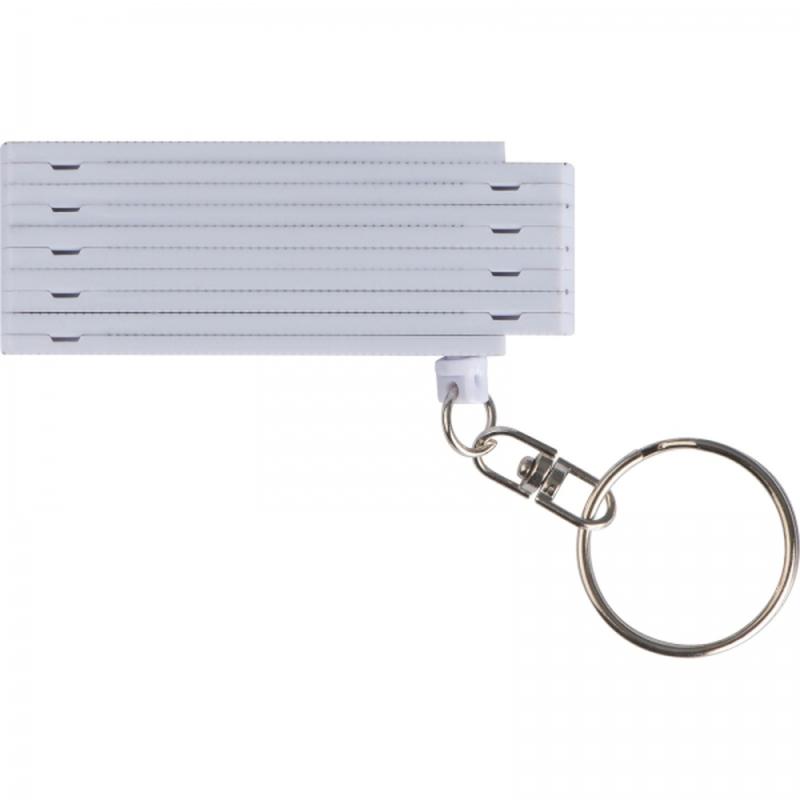 Brelok ze składaną, plastikową miarką o długości 0,5 m.