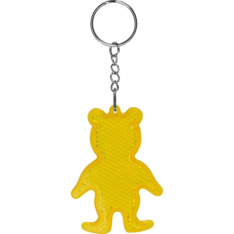 Plastikowy breloczek odblaskowy w kształcie misia.