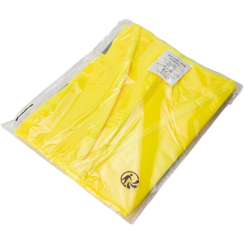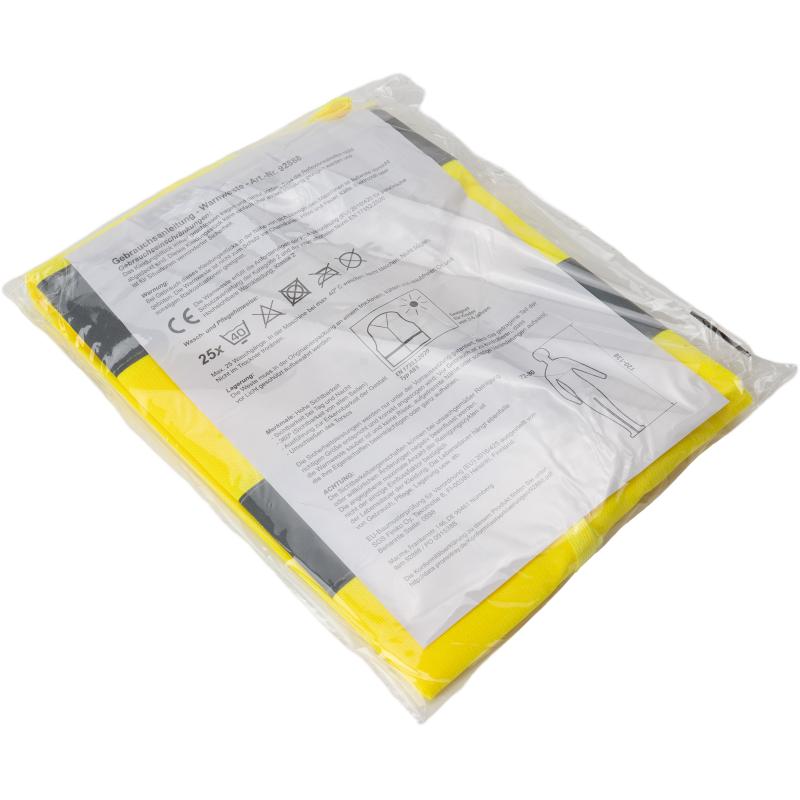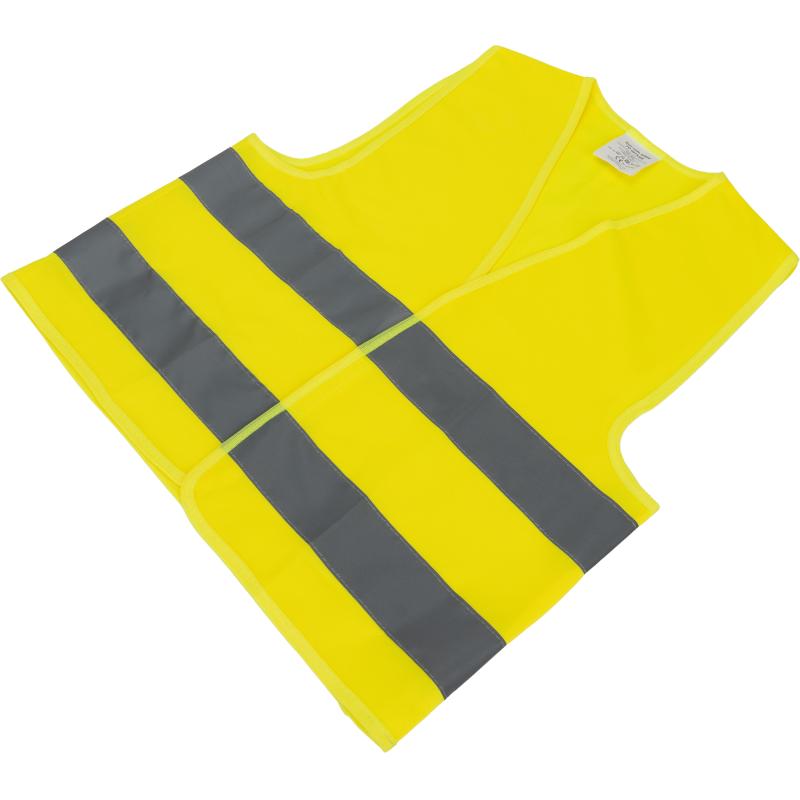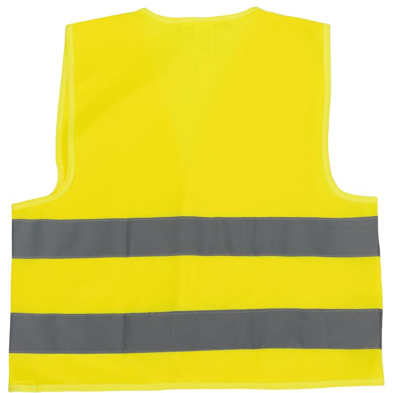 Poliestrowa kamizelka odblaskowa dla dzieci z paskami odbijającymi światło klasy 2, certyfikat EN 1150:1999.