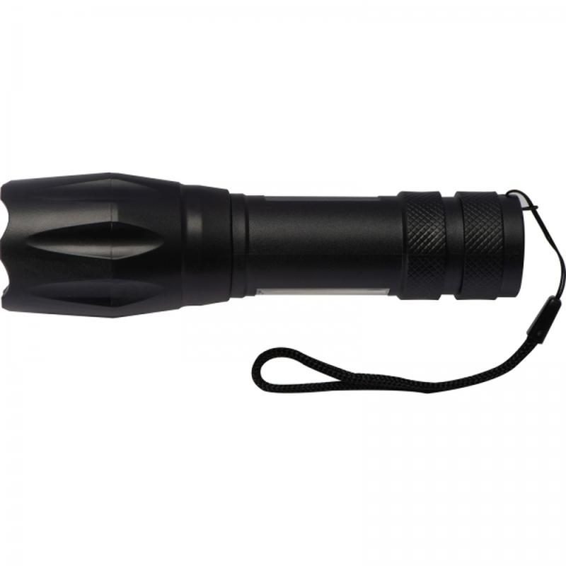 Latarka z baterią o pojemności 600 mAh i diodą COB. Kabelek do ładowania w zestawie.