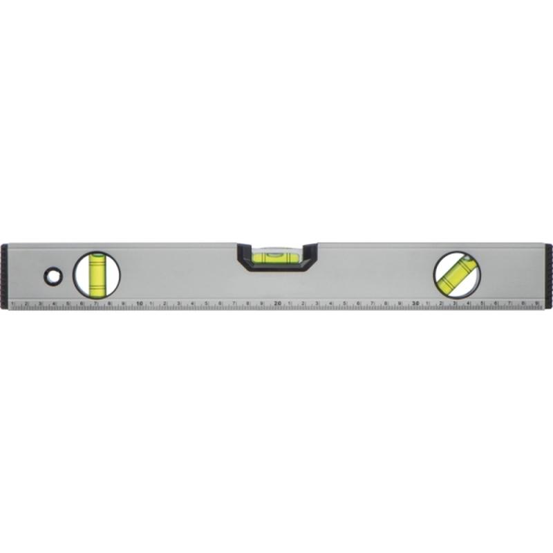 Poziomica wykonana z aluminium, z trzema libelkami - poziom, pion, kąt 45°, magnetyczną podstawą i 40 cm miarką.
