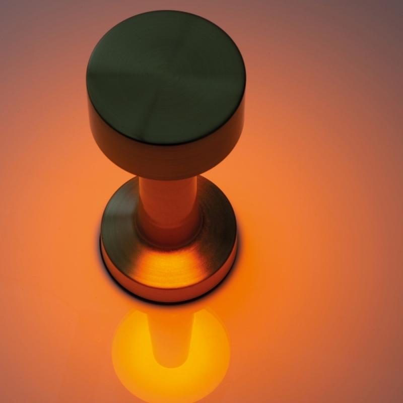 Lampka stołowa wykonana ze stali nierdzewnej, z baterią o pojemności 800 mAh, ładowaną na kabel USB typu C. Światło lampy można ściemniać i przełączać między barwą chłodną i ciepłą.