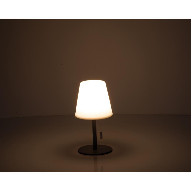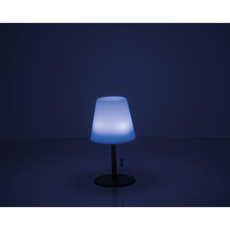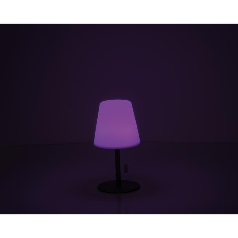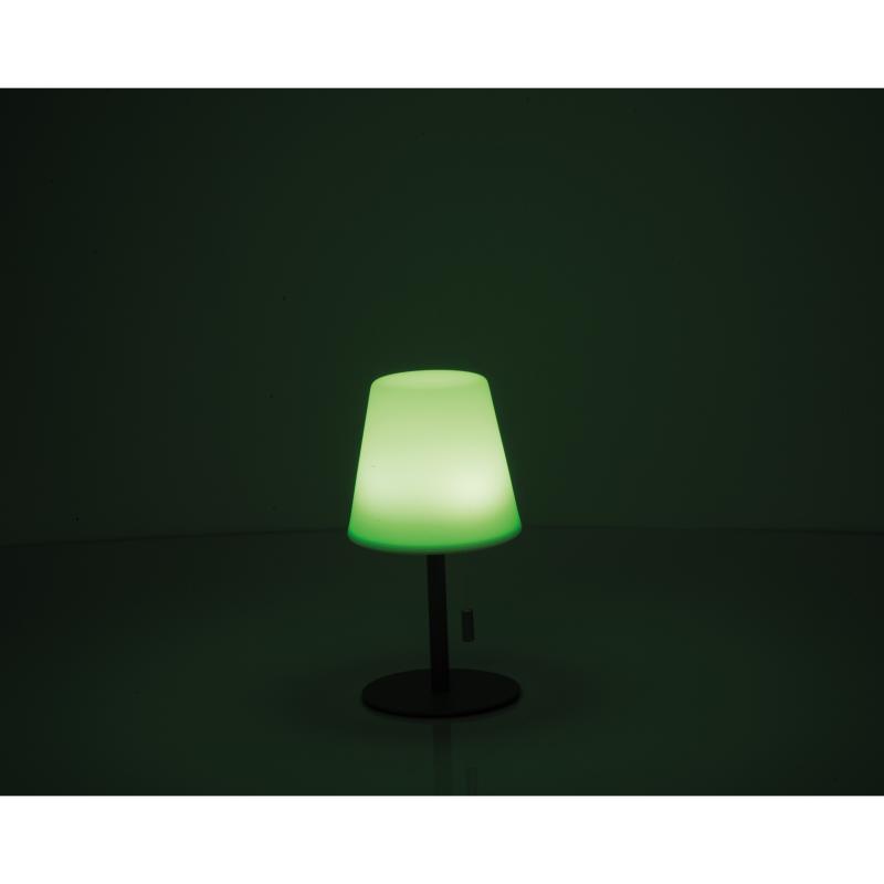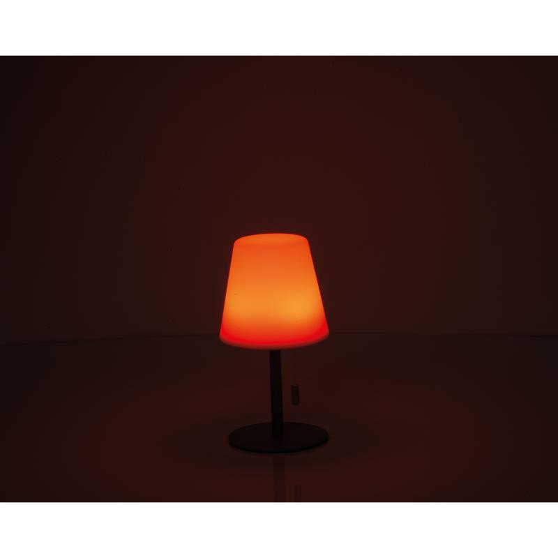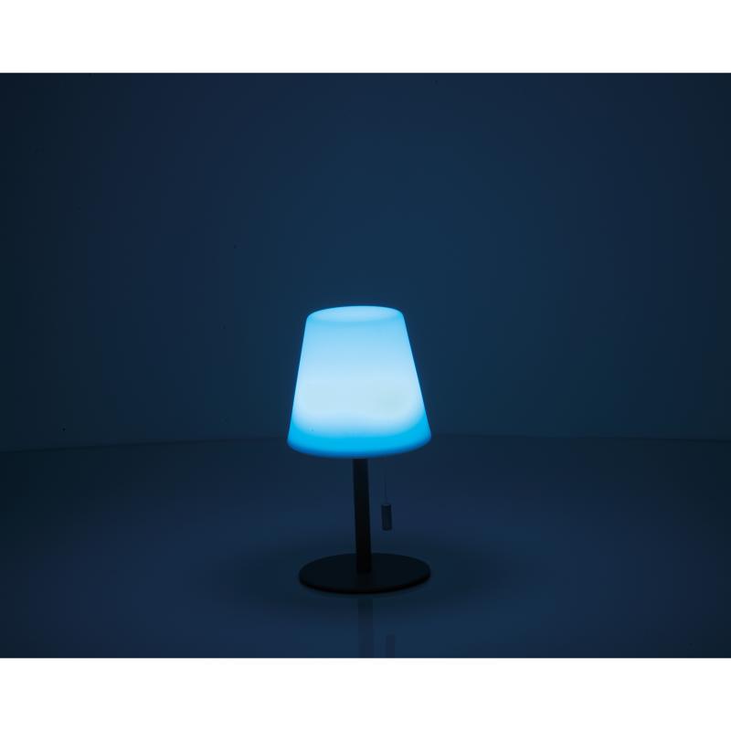 Mała lampka z funkcją zmiany kolorów, w kompaktowym rozmiarze (Ø 11 × 20 cm), z czasem pracy od 4 do 10 godzin, napięciem 3,7 V oraz wbudowanym, ładowalnym akumulatorem o pojemności 1200 mAh. Idealna do ogrodu, na taras lub balkon. Lampa tworzy przyjemną atmosferę na świeżym powietrzu dzięki różnorodnym kolorom światła.