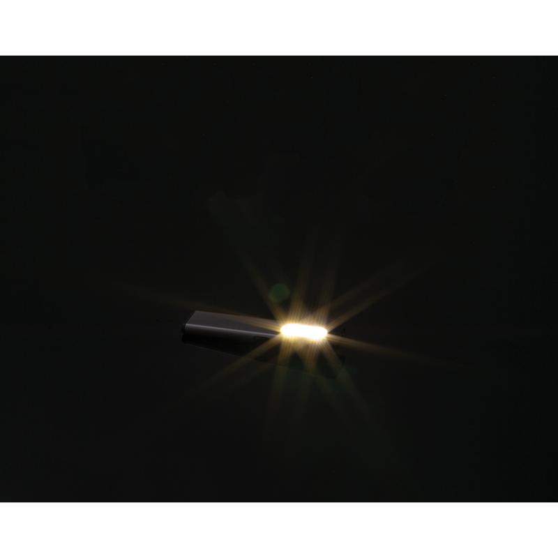 Latarka o pojemności 450 mAh, wykonana z aluminium z recyklingu, z bocznym światłem 160 lumenów i przednim 80 lumenów i magnetyczną krawędzią.