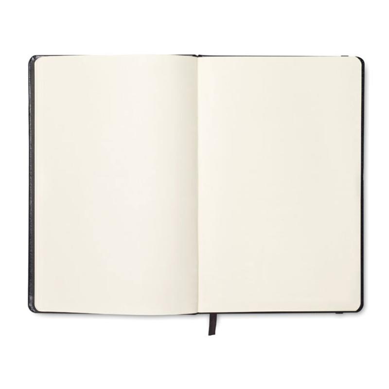 Notes A5 z twardą okładką z PU. 192 gładkie strony z papieru z recyklingu (96 kartek). Dopasowane kolorystycznie elastyczne zamknięcie i tasiemka . FSC®-certified | FSC MIX CREDIT, P7.1, FSC-C213206