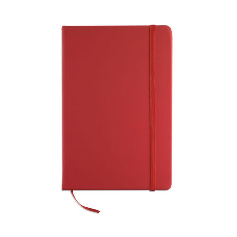 Notes A5 z twardą okładką z PU. 192 gładkie strony z papieru z recyklingu (96 kartek). Dopasowane kolorystycznie elastyczne zamknięcie i tasiemka . FSC®-certified | FSC MIX CREDIT, P7.1, FSC-C213206