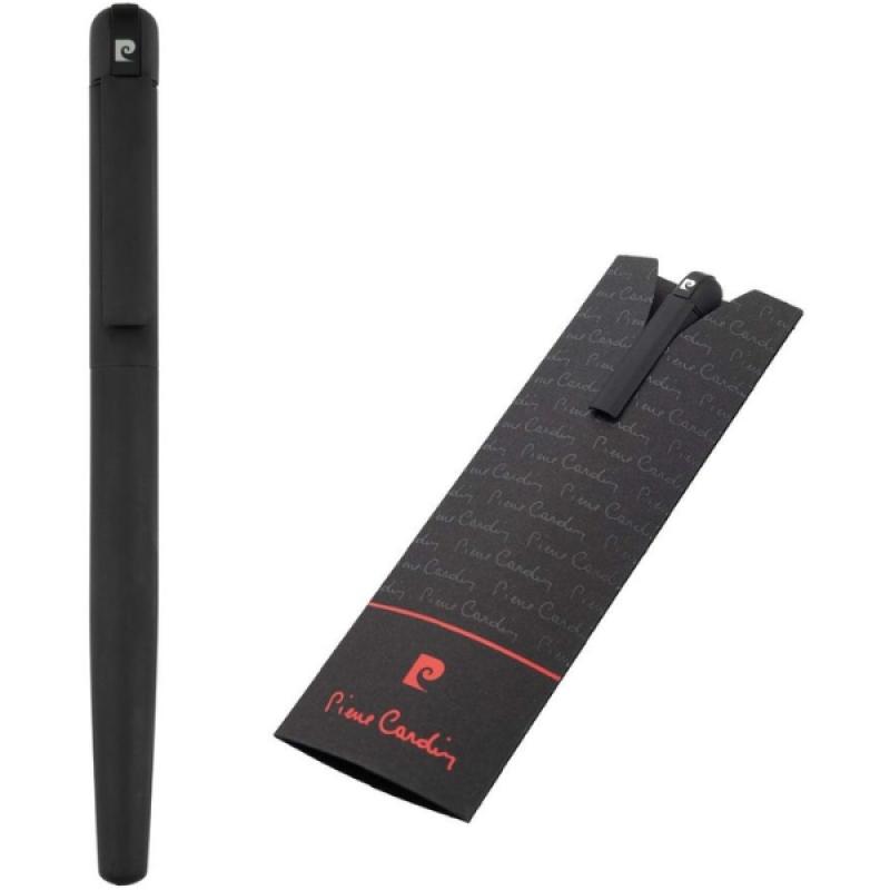 Pióro kulkowe z powierzchnią soft touch i dużym metalowym klipsem. Pióro zawiera nabój Schneider w kolorze niebieskim, z końcówką 0,6 mm. Pióro zapakowane w eleganckie etui, posiada certyfiat autentyczności Pierre Cardin.