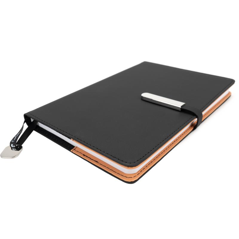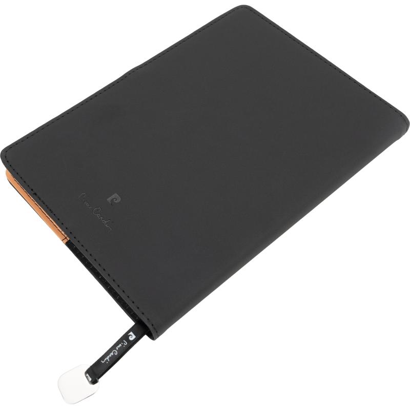 Luksusowy notatnik Pierre Cardin o formacie A5, w twardej okładce z czarnymi przeszyciami. Notes posiada magnetyczne zamknięcie, 192 strony w linie o gramaturze 70 g/m2. Pakowany w pudełko prezentowe z certyfikatem autentyczności.