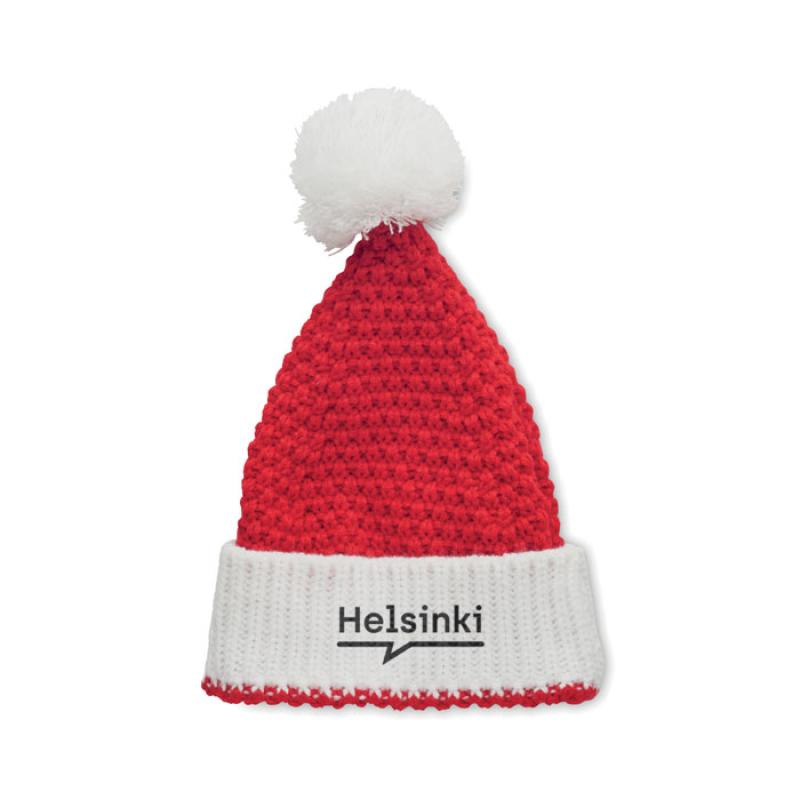 Świąteczna czapka z dzianiny z mankietem i pomponem z miękkiego, rozciągliwego akrylu.