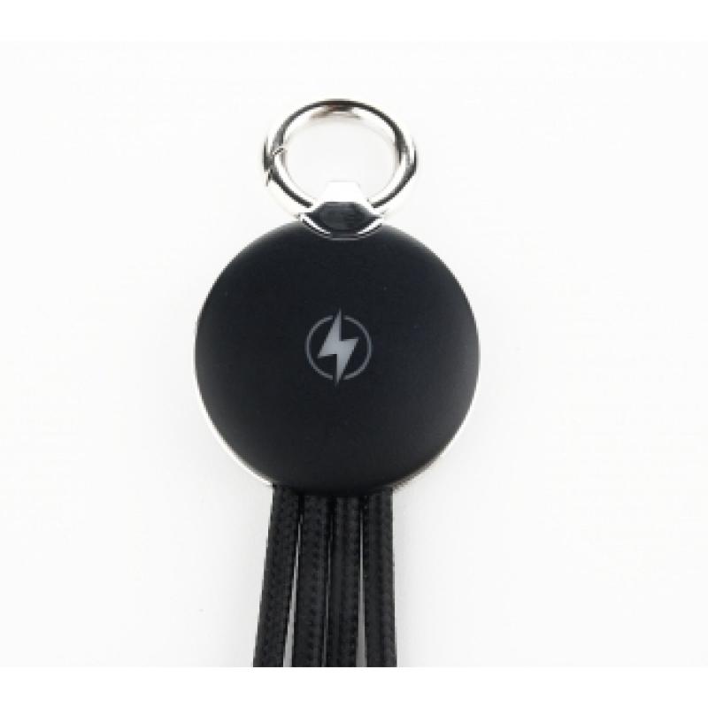 Kabel do ładowania z 3 końcówkami: micro USB, lightning i type-C. Po wygrawerowaniu logo jest podświetlone od spodu. Kolor światła do wyboru przy imporcie z Chin, minimalna ilość do zamówienia 100 szt. : biały, niebieski, czerwony, zielony.Wyjście: 5 V, 2 AWejście: 5 V, 2 ADługość kabla: 16,5 cm
