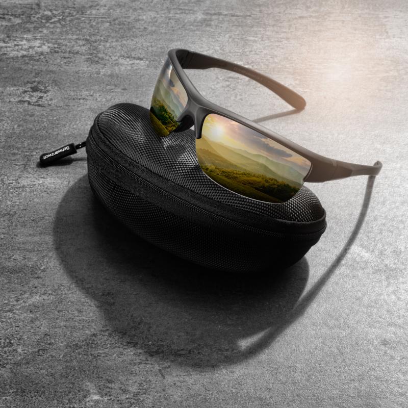Okulary z polaryzacją, czarnymi soczewkami i ochroną UV 400. Polaryzacja redukuje nieprzyjemne odblaski i zmęczenie oczu. Okulary zapakowane są w twarde etui oraz woreczek z mikrofibry, wewnątrz znajduje się również ściereczka do czyszczenia okularów.
