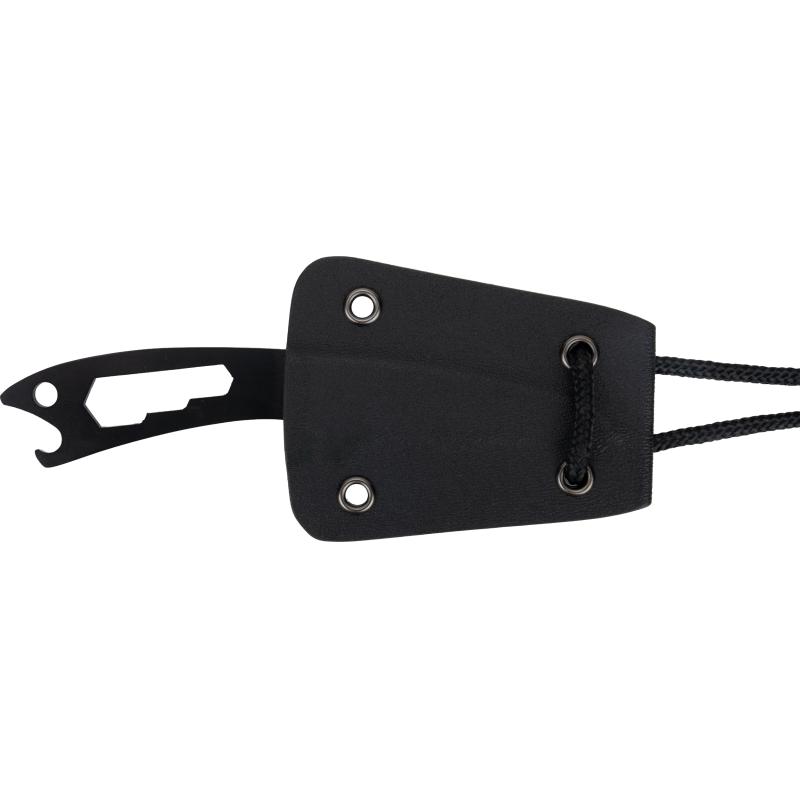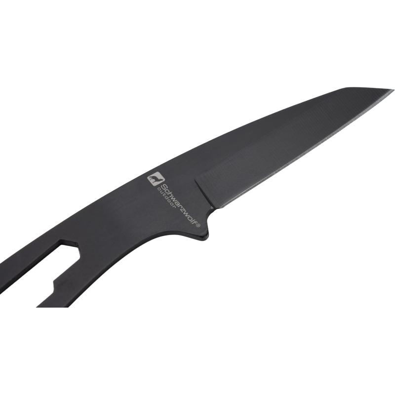Wielofunkcyjny nóż Schwarzwolf w etui ze ściągaczem. Dzięki końcówce do dokręcania nakrętek umieszczonej przy rękojeści nóż może służyć jako otwieracz do butelek. Nóż zawiera również pomarańczowy gwizdek na sznurku. Obudowa wykonana jest ze specjalnego stopu tworzywa Kydex. Materiał: stal nierdzewna, Kydex.