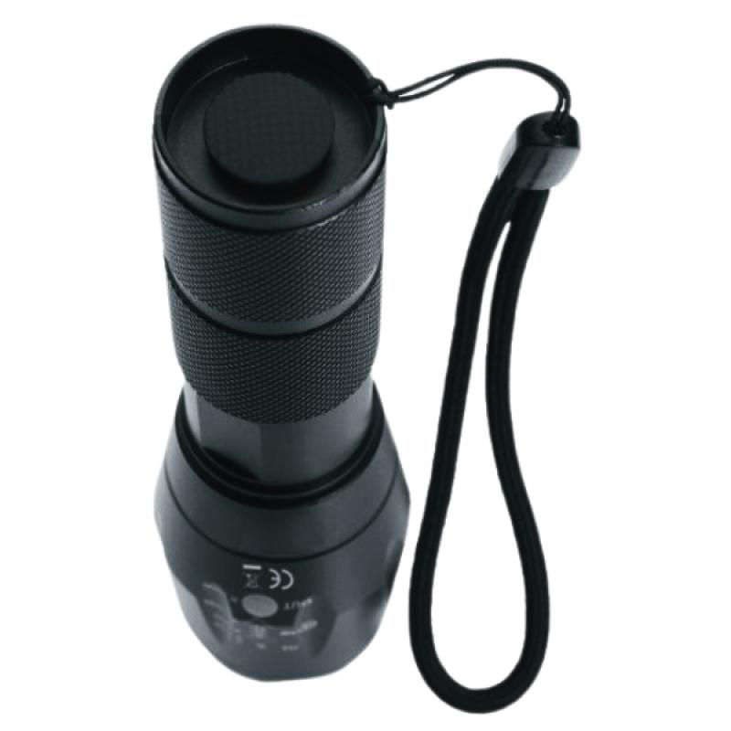 Latarka marki Schwarzwolf z paskiem na nadgarstek. Jasność: 260 lumenów. Baterie 3 x AAA w zestawie.