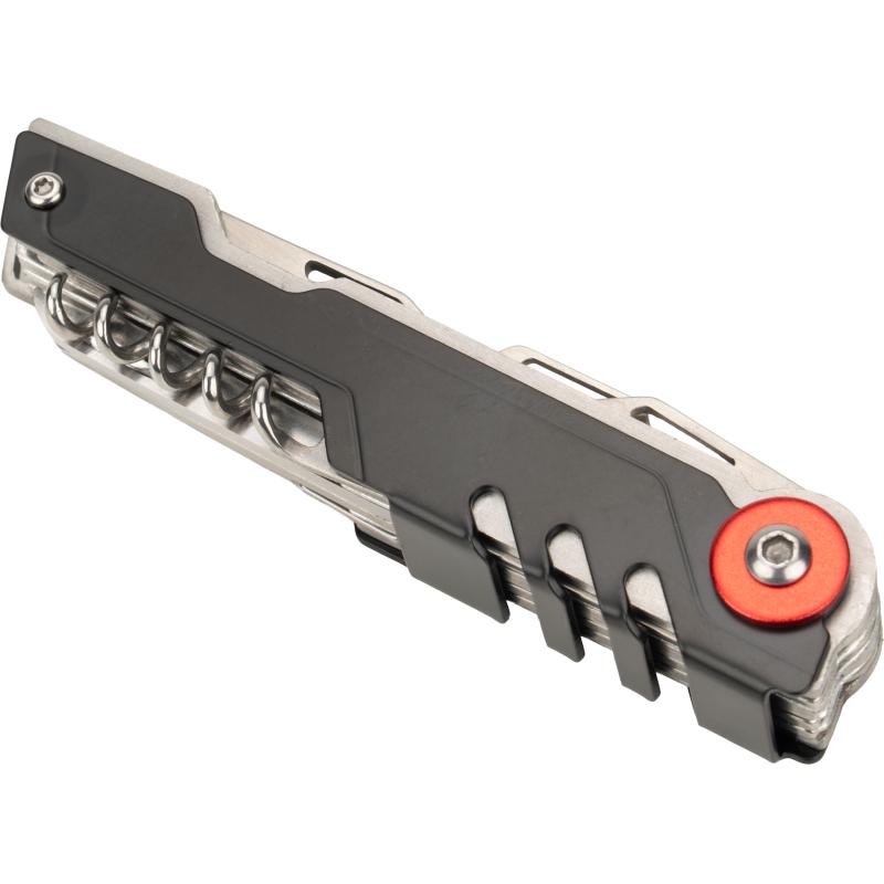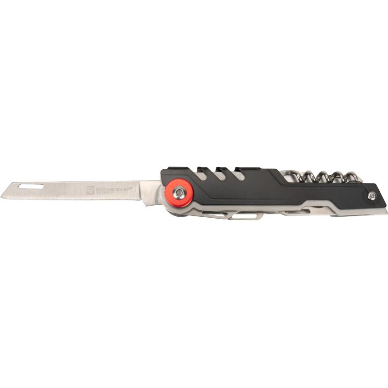 Narzędzie wielofunkcyjne marki Schwarzwolf z 12 przyborami. Wykonane ze stali S/S 2CR13.