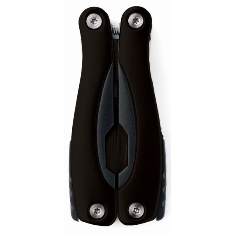 Multitool posiada 13 narzędzi, m.in.: kombinerki, pilnik, śrubokręt płaski i Philips, nóż, piłka, otwieracz do butelek i konserw. Narzędzie zapakowane w neoprenowy pokrowiec.