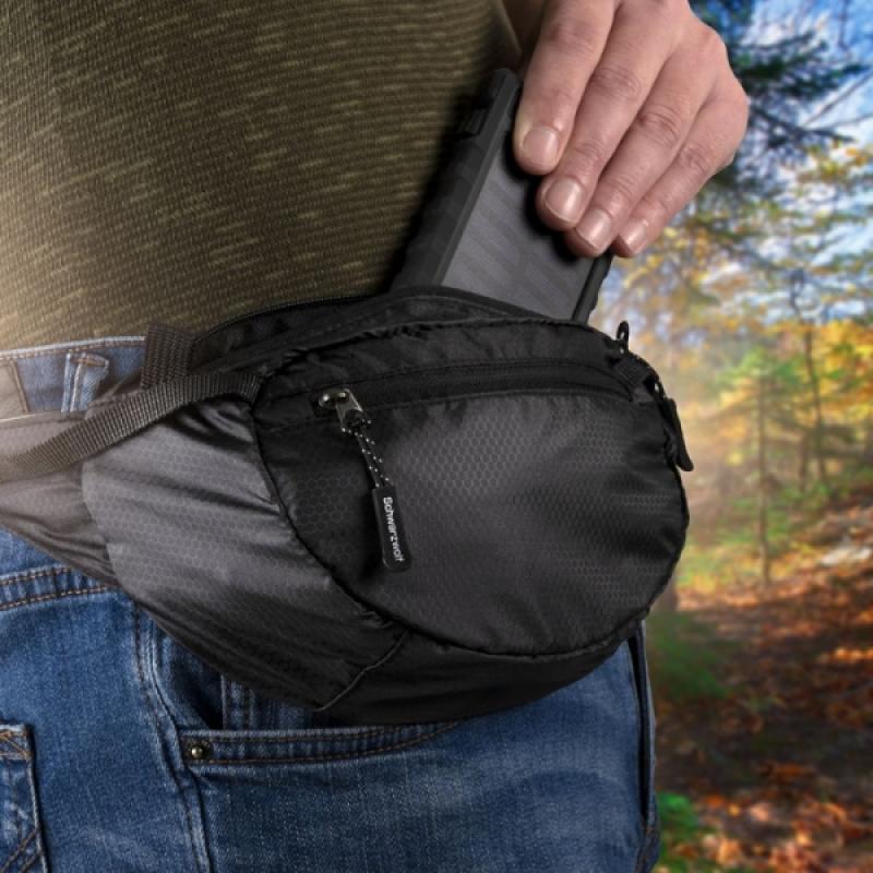 Łatwa w składaniu torba na pasku. Torba posiada trzy zapinane na zamek przegródki: kieszeń główna, wewnętrzna i zewnętrzna. Posiada również pętelkę z karabińczykiem na klucze. Uszyta jest z przyjemnego w dotyku, miękkiego materiału. Jest niewidoczna pod ubraniem i nie przyciąga złodziei. Dzięki regulowanemu paskowi możesz nosić ją w talii lub na ramieniu.