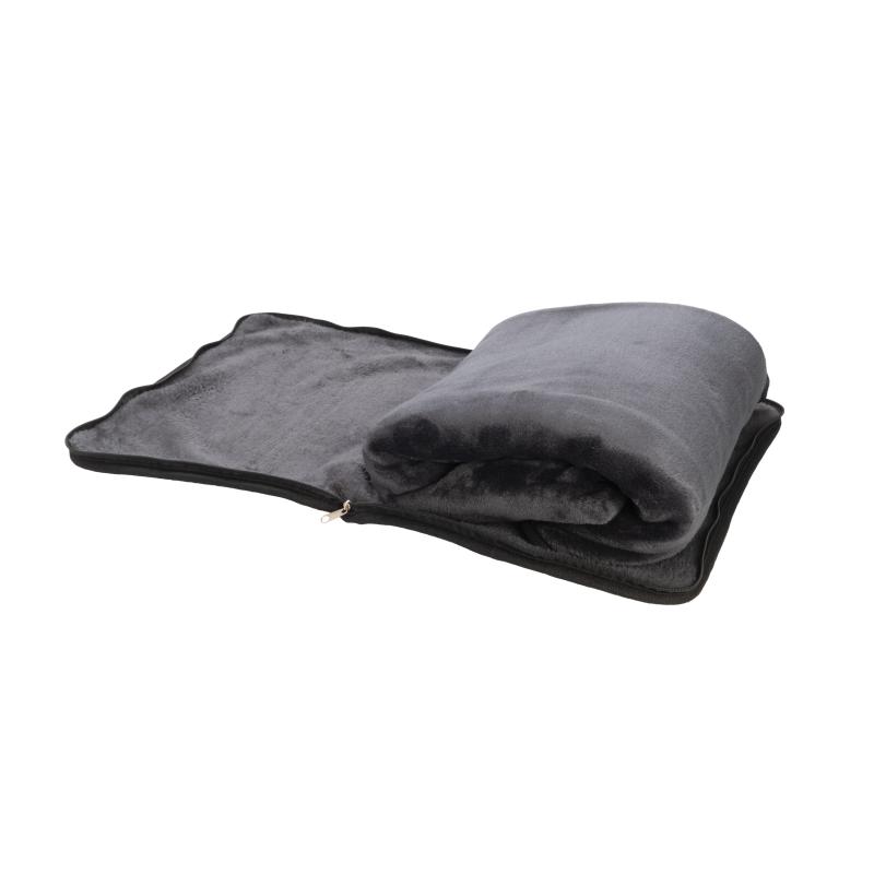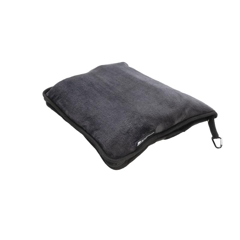 Polarowy koc podróżny Schwarzwolf 2w1, który można wykorzystać jako kocyk lub złożyć w poszewkę wykonaną z tego samego materiału i zamienić go w wygodną poduszkę. Pokrowiec na złożony koc posiada karabińczyk umożliwiający przypięcie go do bagażu.