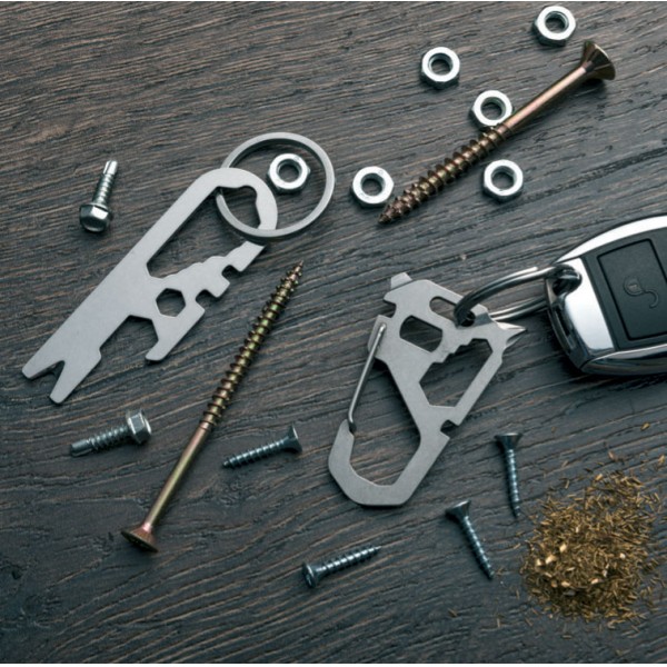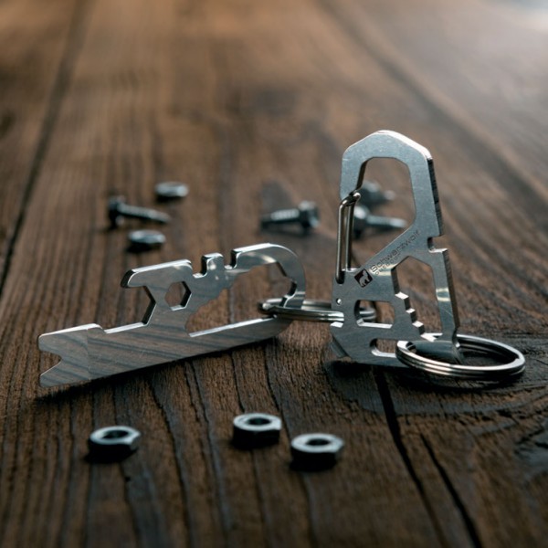 Wielofunkcyjny brelok marki Schwarzwolf zawierający 10 różnych narzędzi, w tym wkrętak Phillips, śrubokręt, klucz w 4 rozmiarach oraz magnes.