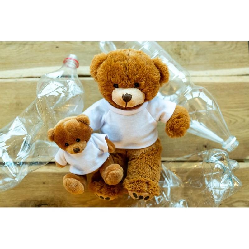 Brązowy miś z białą koszulką pod nadruk (koszulka pakowana oddzielnie), wykonany z pluszu z butelek PET
