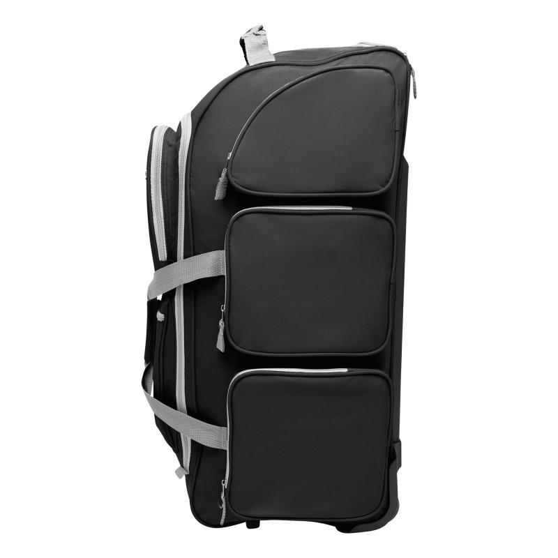 Torba podróżna na kółkach 9P. 3 przednie kieszenie na zamek, przestronna komora główna na zamek z 3 dodatkowymi kieszeniami na zamek, z tyłu 1 kieszeń na zamek, 1 wyściełany uchwyt do przenoszenia, wysuwana rączka do ciągnięcia torby ukryta w kieszonce na zamek, lekko jeżdżące kółka z ochraniaczami rogów, 2 płozy i stopki do podparcia o podłoże. Wiele kieszonek dla lepszej organizacji pakowania.