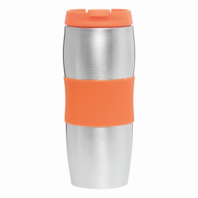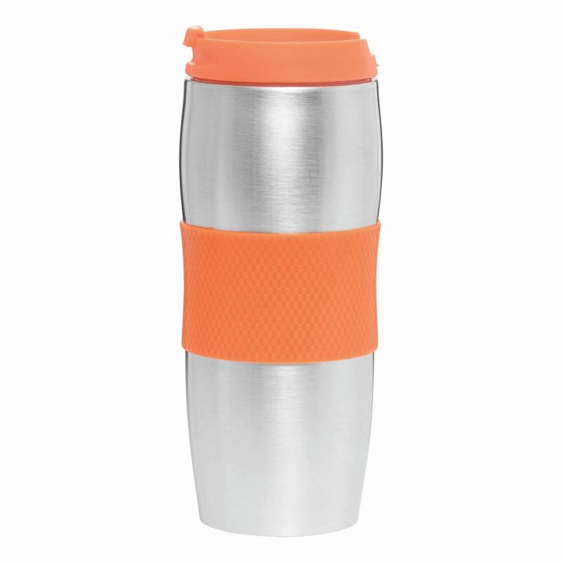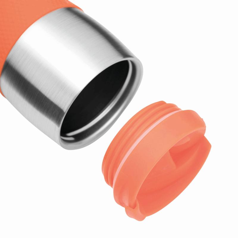 Kubek termiczny AU LAIT wykonany ze stali nierdzewnej (wewnątrz i na zewnątrz). Odkręcane wieczko w różnych kolorach z otworem do picia, kolorowy plastikowy uchwyt i gumowana podstawa dla lepszej stabilności, poj. ok. 380 ml, pakowany w pudełko.
