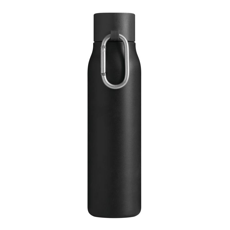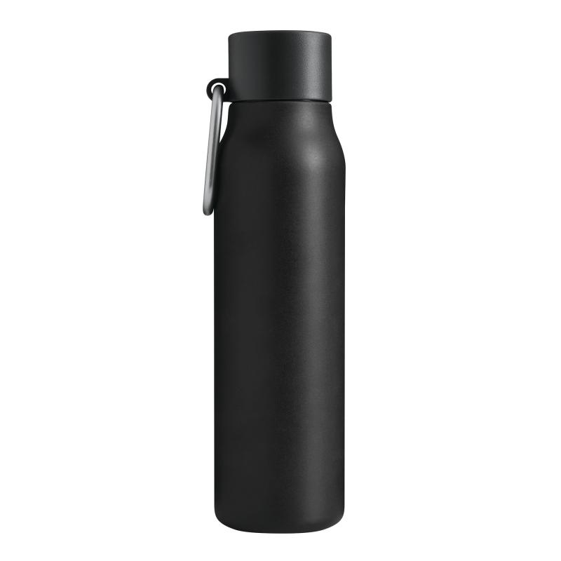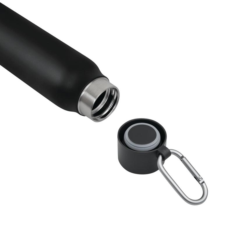 Próżniowa butelka ALPINE PEAK z podwójną izolacją. Wewnątrz wykonana ze stali nierdzewnej z recyklingu, na zewnątrz ze stali nierdzewnej. Posiada plastikową pokrywkę z bezpieczną zakrętką, silikonowy pierścień uszczelniający i karabińczyk (karabińczyk NIE nadaje się do wspinaczki). O pojemności ok. 550 ml. Utrzymuje ciepło przez ok. 8 godzin i zimno nawet do 12. Zapakowana jest w pudełko.