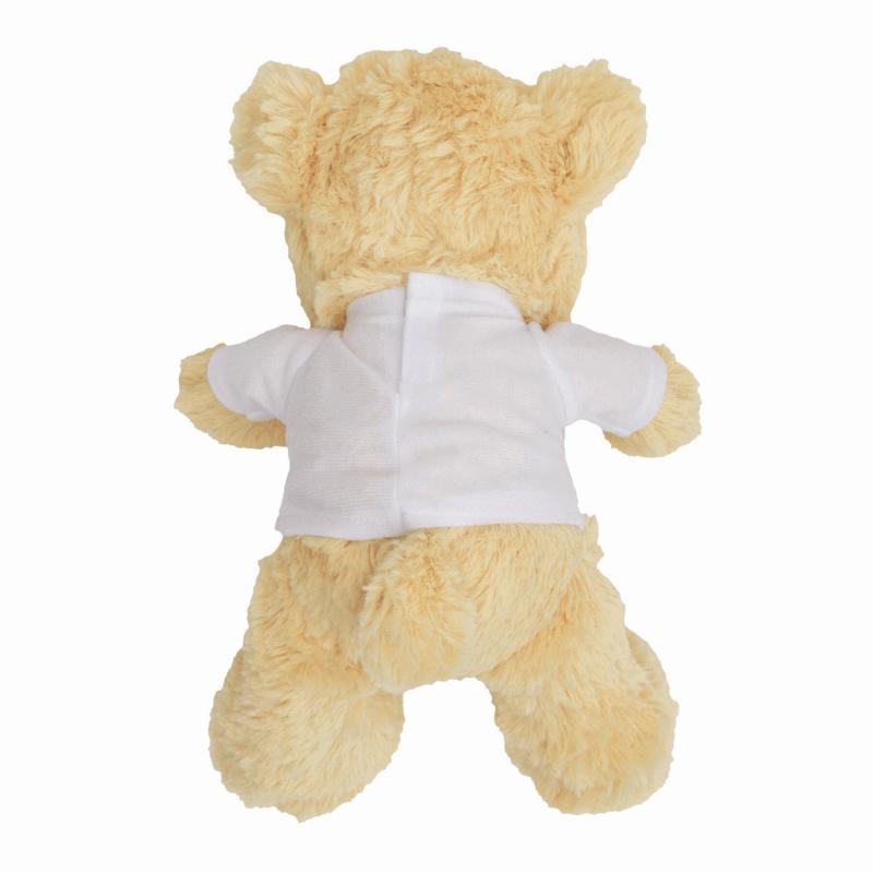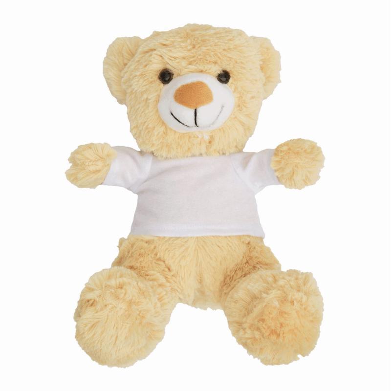 Pluszowy miś ALEXANDER. Maskotka siedząca z miękkim futerkiem i osobno pakowanym białym T-shirtem do znakowania.