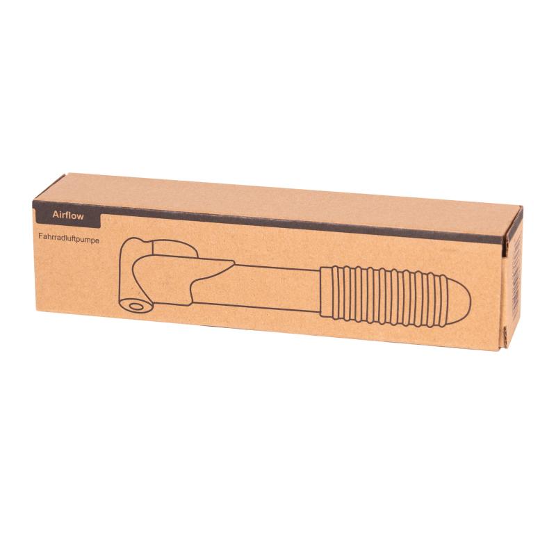Pompka rowerowa AIRFLOW z przejściówką dla standardowych opon rowerowych i nadmuchiwanych produktów. Zawiera 2 zaworki dla kół rowerowych.