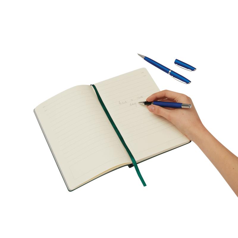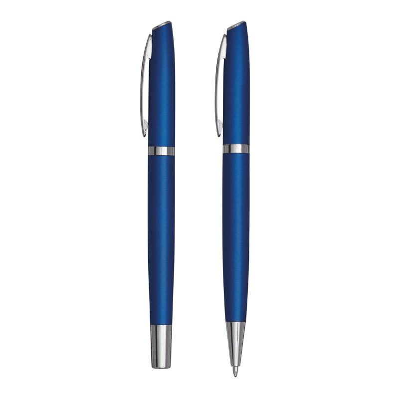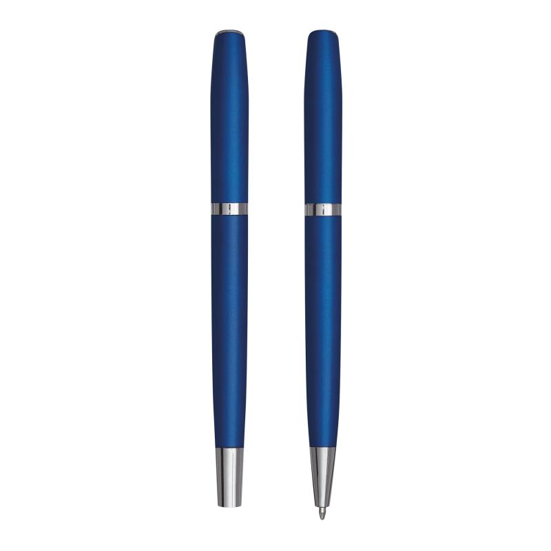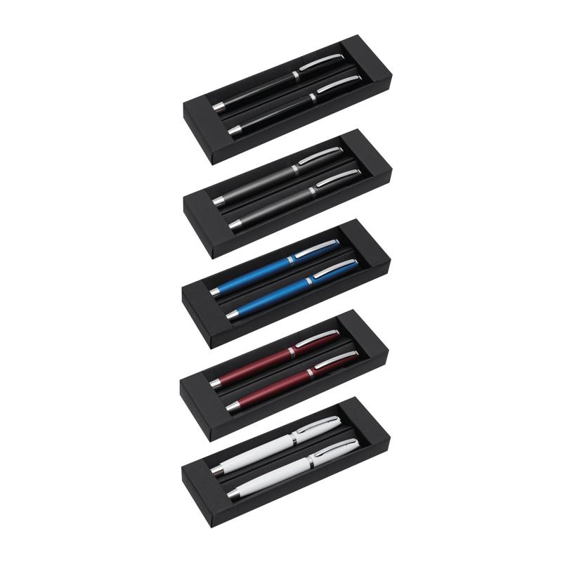 Zestaw do pisania ALPHABET składa się z długopisu z mechanizmem obrotowym i pióra kulkowego, czarny tusz, pakowany w pudełko.