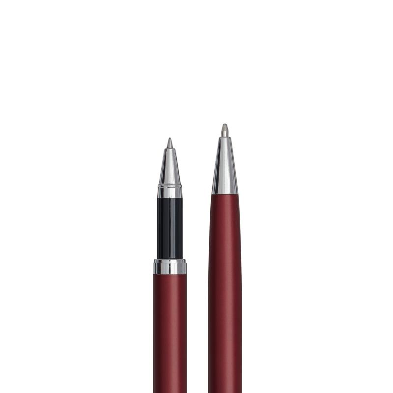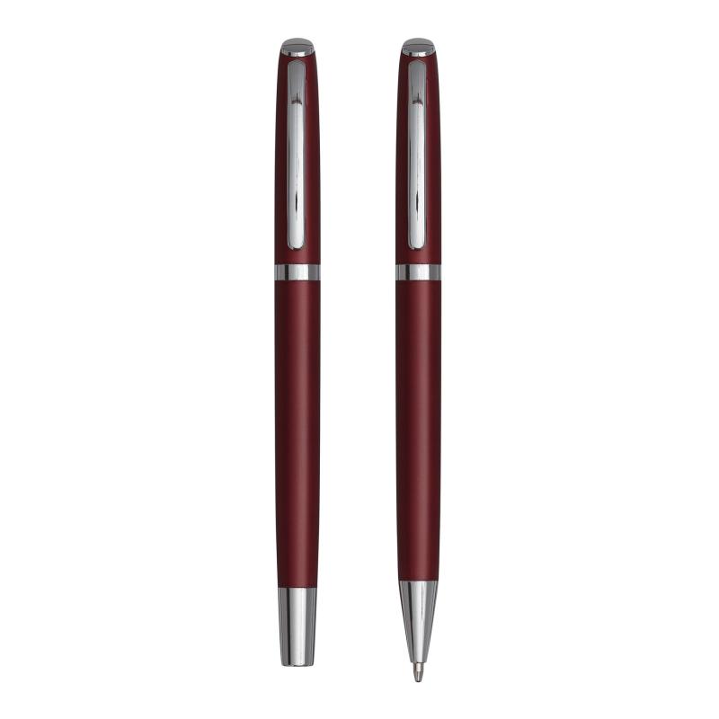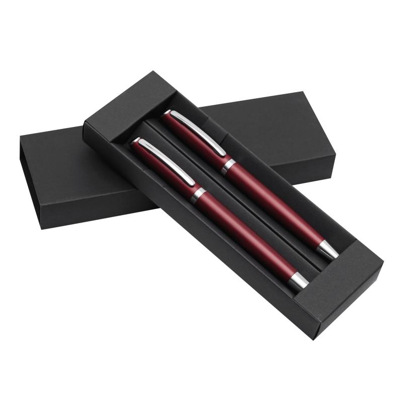 Zestaw do pisania ALPHABET składa się z długopisu z mechanizmem obrotowym i pióra kulkowego, czarny tusz, pakowany w pudełko.