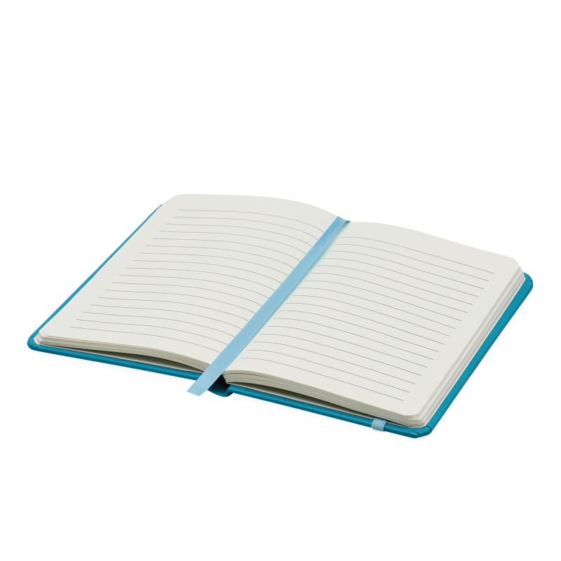 Notes ATTENDANT w formacie A6, z zaokrąglonymi rogami, zamykany gumką, z wszytymi zakładkami, 80 kartek w linie, gramatura ok. 80 g/m².