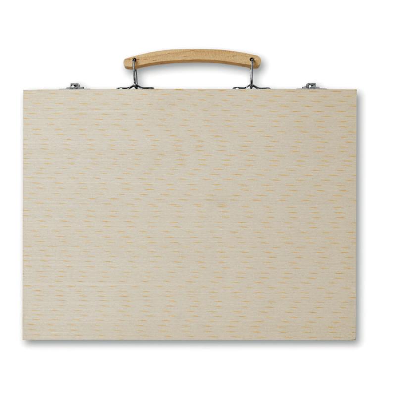 Komplet artysty w drewnianym pudełku. 66 elementów.