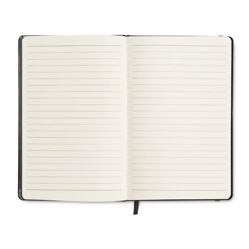 Notes A6 w twardej okładce z PU. 192 strony w linie (96 kartek). Dopasowany elastyczny pasek zamykający i tasiemka do oznaczania stron. FSC®-certified | FSC MIX CREDIT, P7.1, FSC-C213206