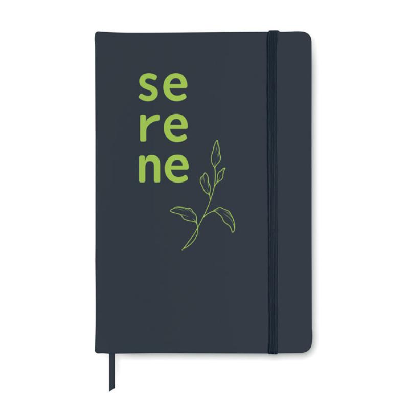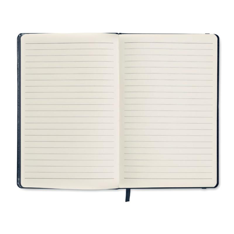 Notes A5 w twardej okładce z PU. 192 stron z papieru recyklingu w linie (96 kartek). Dopasowany elastyczny pasek zamykający i tasiemka do oznaczania stron. FSC®-certified | FSC MIX CREDIT, P7.1, FSC-C213206