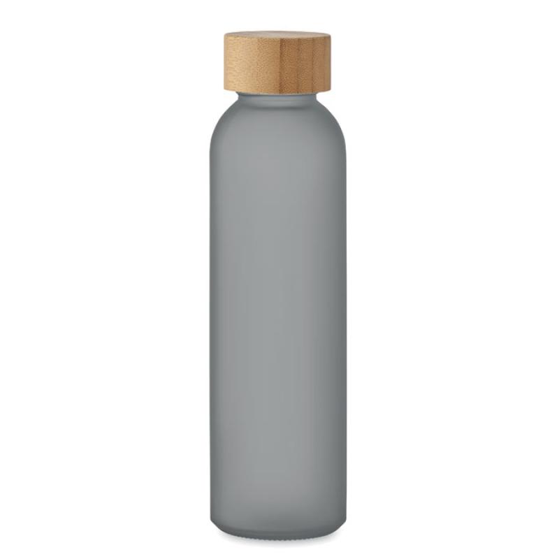 Szklana butelka z matowym wykończeniem i bambusową zakrętką. Szczelna. Pojemność: 500 ml. Bambus jest produktem naturalnym, dlatego mogą występować niewielkie różnice w kolorze i rozmiarze poszczególnych elementów, co może mieć wpływ na ostateczny efekt zdobienia.