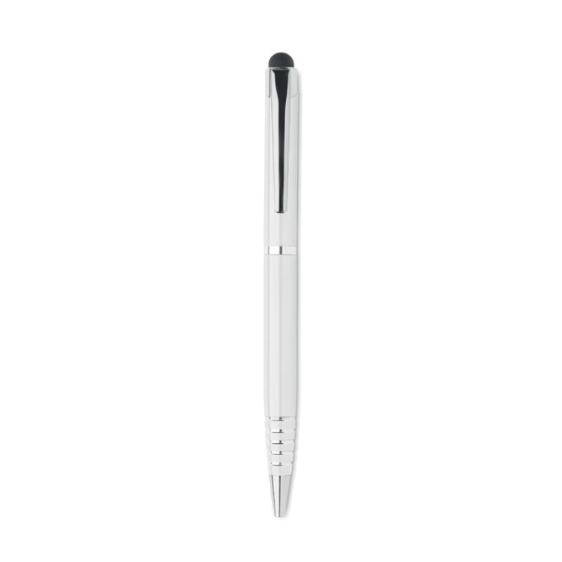 Obrotowy długopis z aluminium pochodzącego z recyklingu z rysikiem do ekranów touch pen. Niebieski tusz.