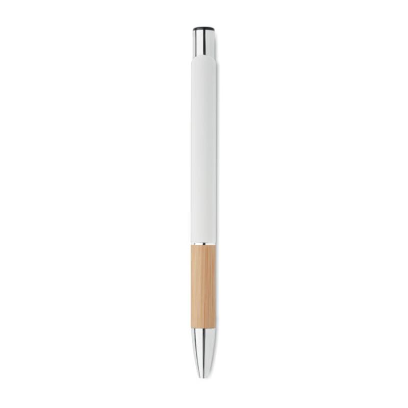 Przyciskany długopis z aluminium z bambusowym uchwytem. Niebieski tusz.