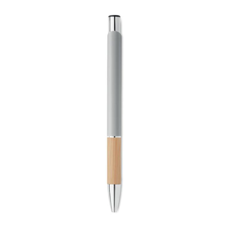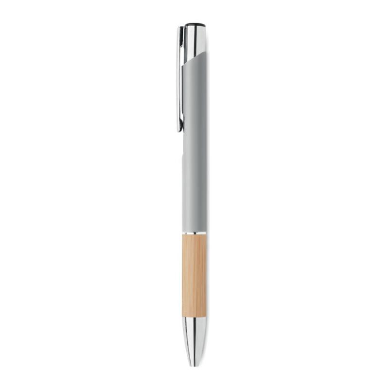 Przyciskany długopis z aluminium z bambusowym uchwytem. Niebieski tusz.