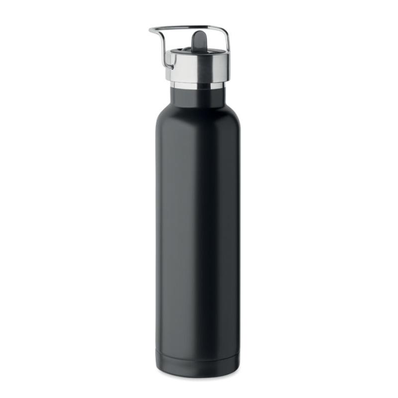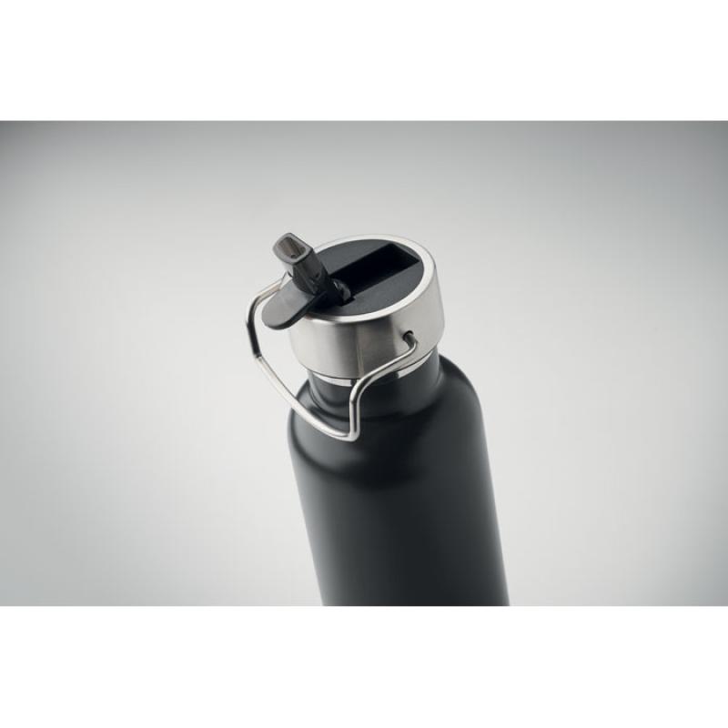 Dwuścienna butelka z izolacją próżniową wykonana ze stali nierdzewnej pochodzącej z recyklingu (90% stali nierdzewnej pochodzącej z recyklingu i 10% stali nierdzewnej) z wbudowaną słomką i zakrętką z uchwytem. Pojemność: 660 ml.