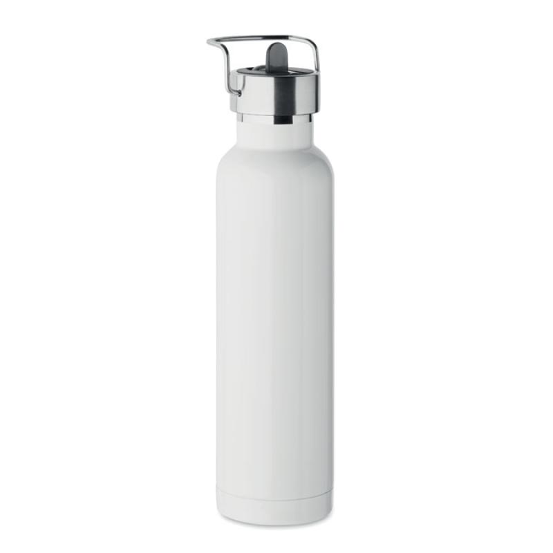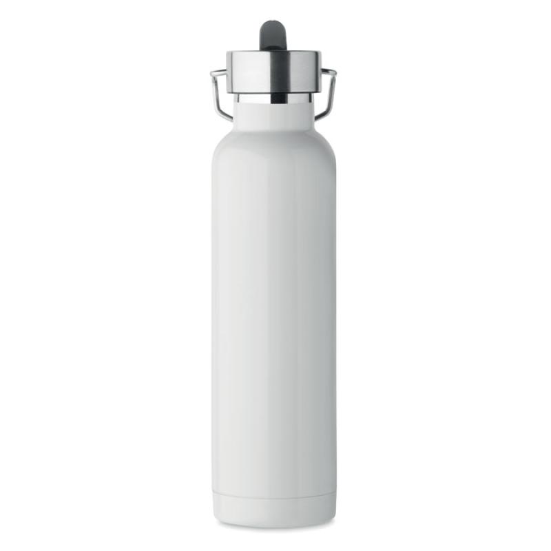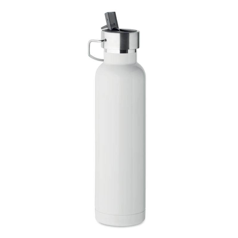 Dwuścienna butelka z izolacją próżniową wykonana ze stali nierdzewnej pochodzącej z recyklingu (90% stali nierdzewnej pochodzącej z recyklingu i 10% stali nierdzewnej) z wbudowaną słomką i zakrętką z uchwytem. Pojemność: 660 ml.